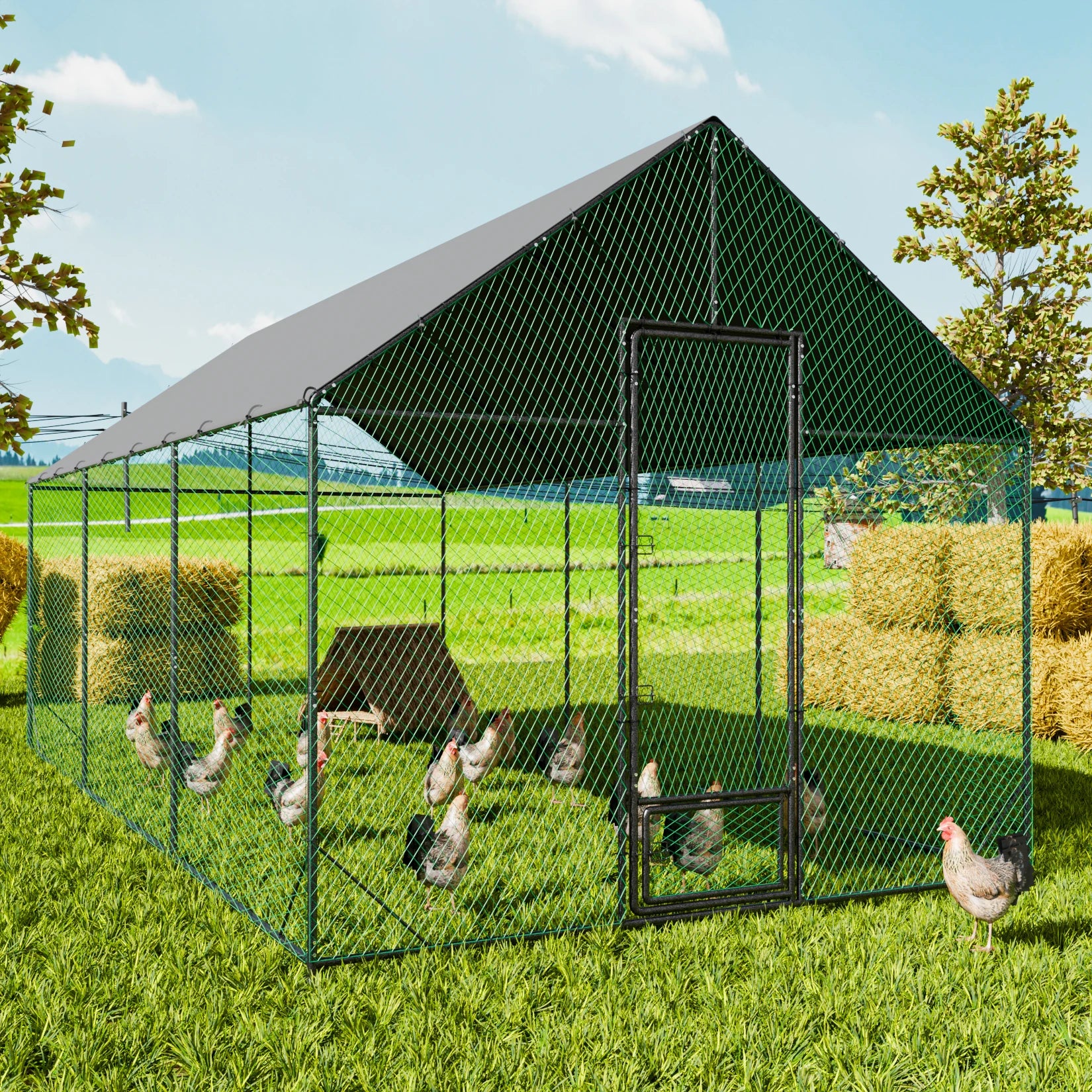 Large Outdoor Upgrade Metal Chicken Coop Walk-in Poultry Run Pen Cage Pet Duck Hen House with Nylon Netting and Cover for Yards
